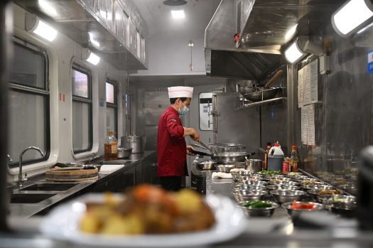 记者看到,银发专列上菜品荤素搭配合理,以蒸、炖、小炒为主,还提供了各类杂粮主食。餐车长李智颖说,菜谱兼具南北方特色,以清淡为主,工作人员严格把控食品安全与营养搭配,并沿途采购新鲜食材,由专业厨师团队烹制,让每位旅客吃得放心安心。